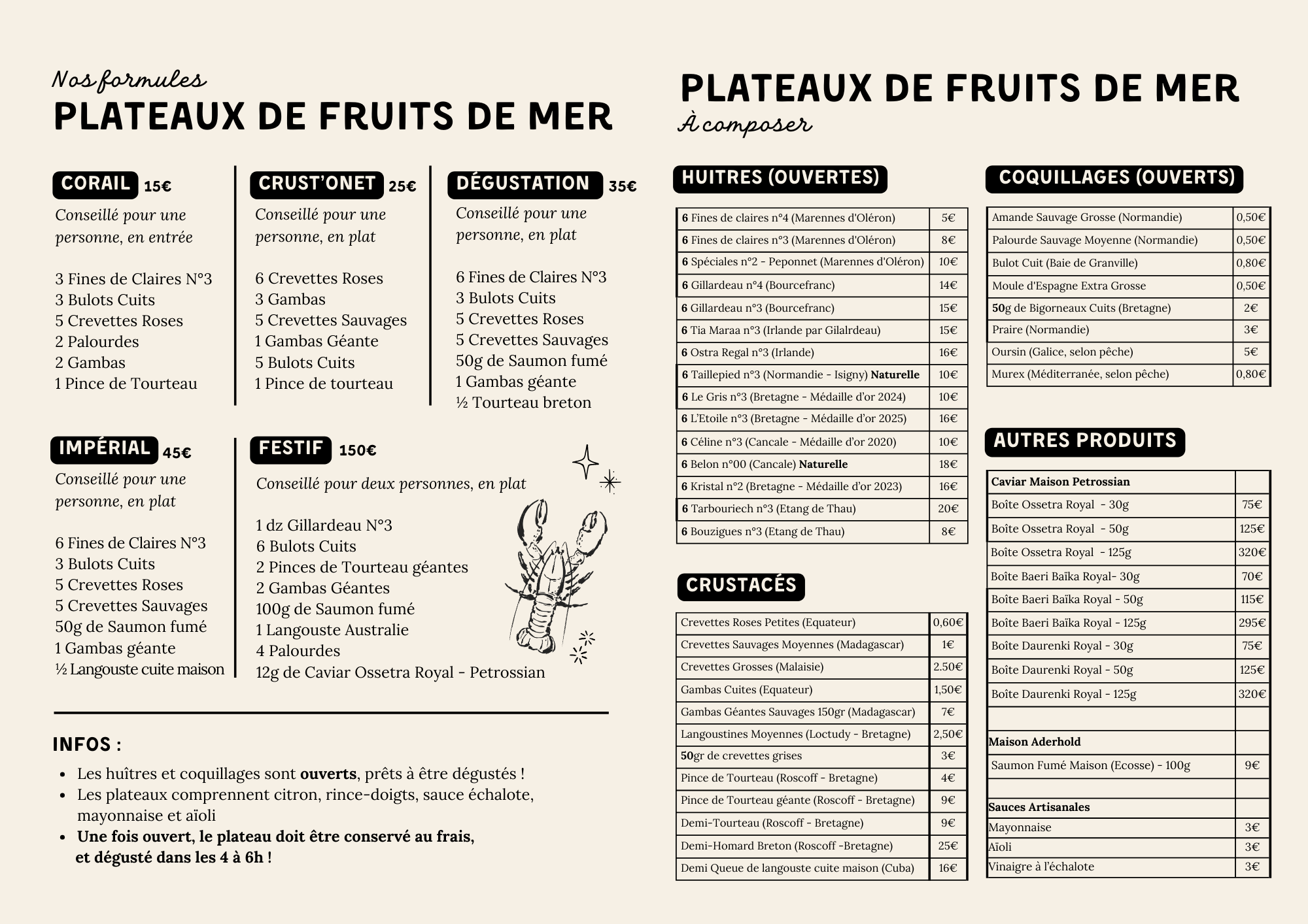 Si vous souhaitez agrandir la Carte plateau de fruits de mer cliquez ici
